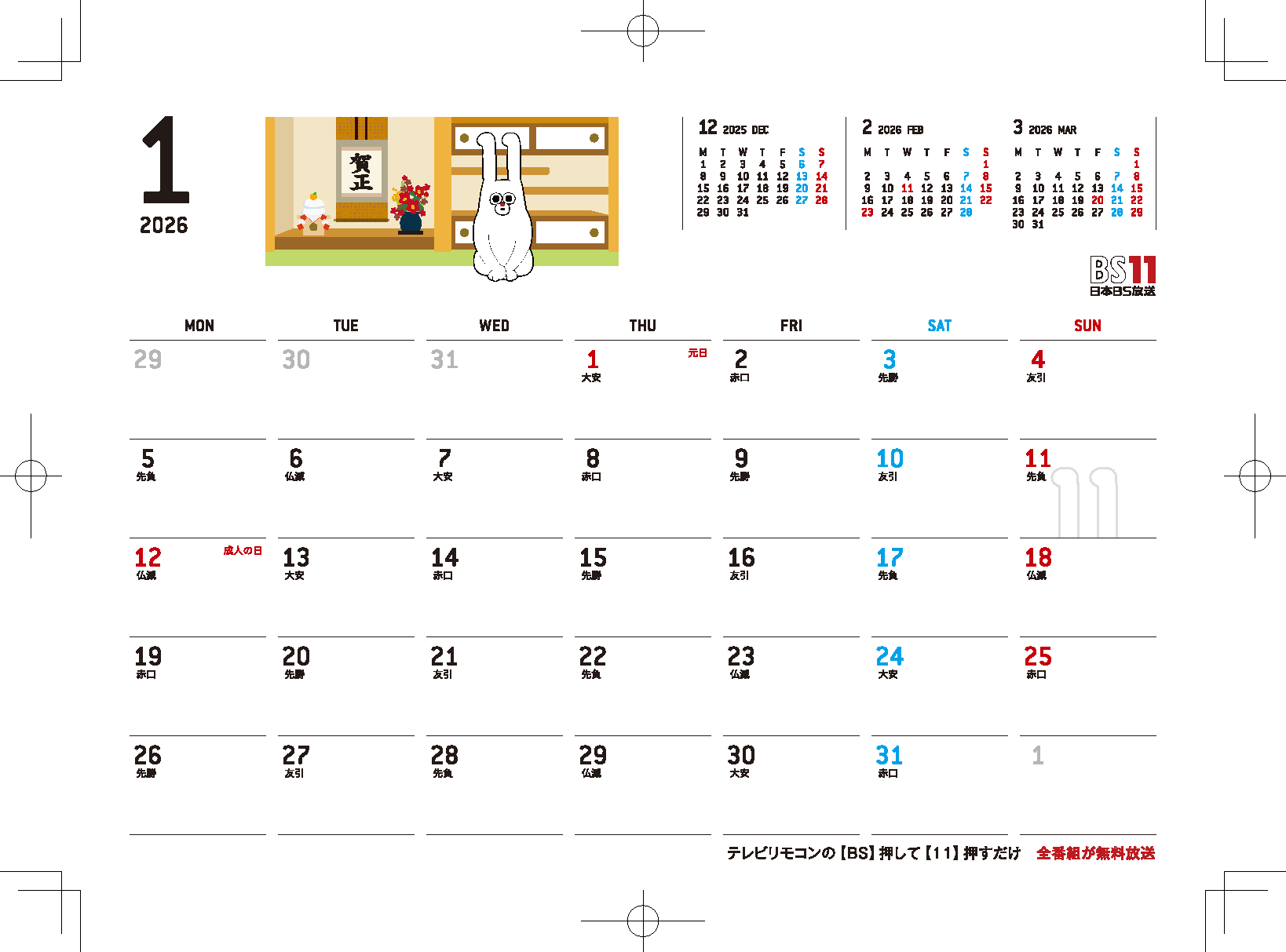 2026年版 じゅういっちゃん卓上カレンダー